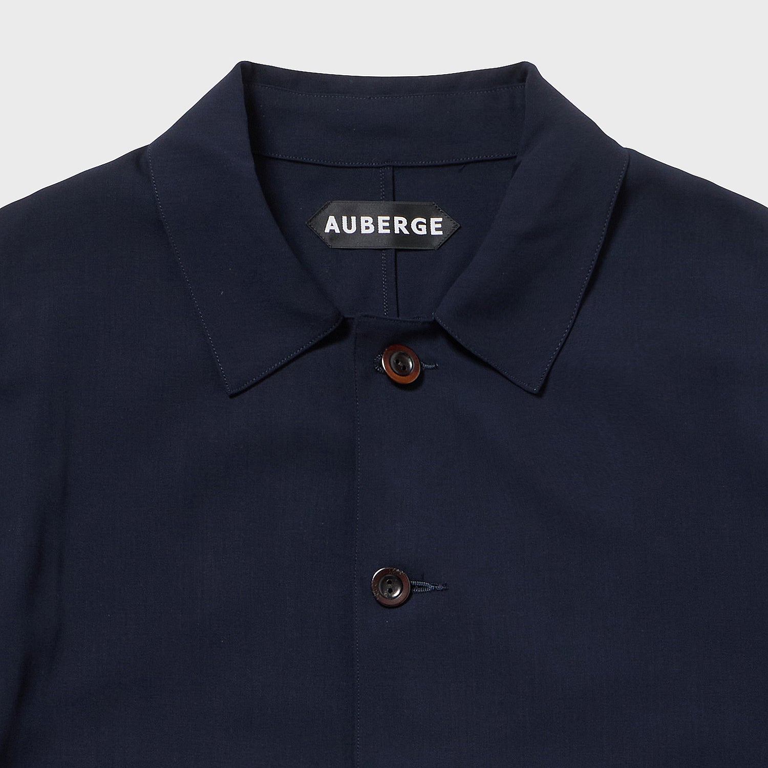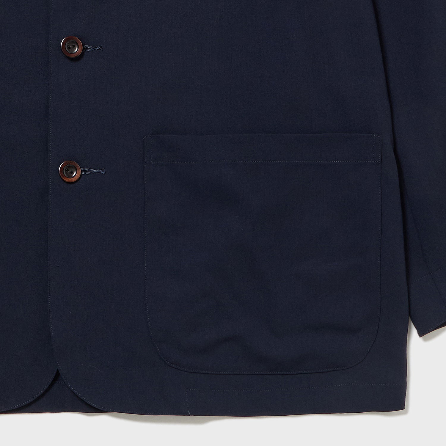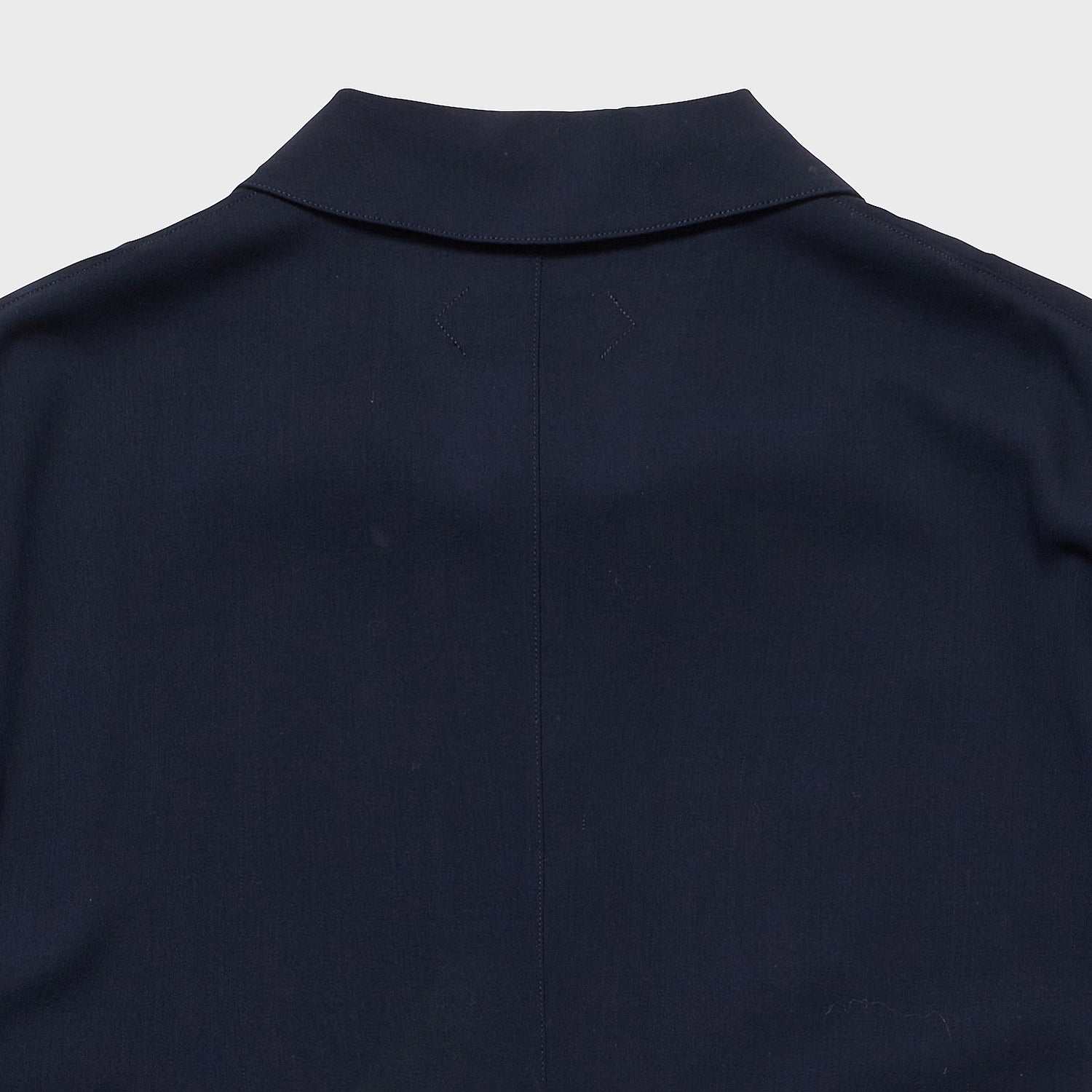 スーパー140’Sをウォッシャブル加工し、そこから強撚糸を作り、2×1綾組織でギャバジンに仕立てました。